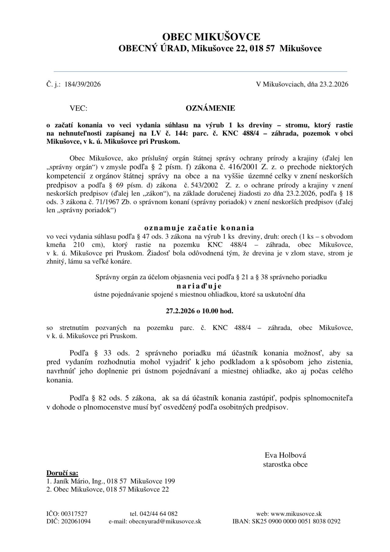 Oznámenie o doručení písomnosti - Martin Holba 18.3.2026