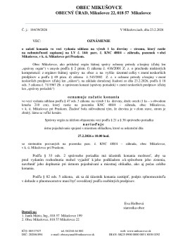 Oznam o ponuke majetku mimo dražby - 23.3.2026