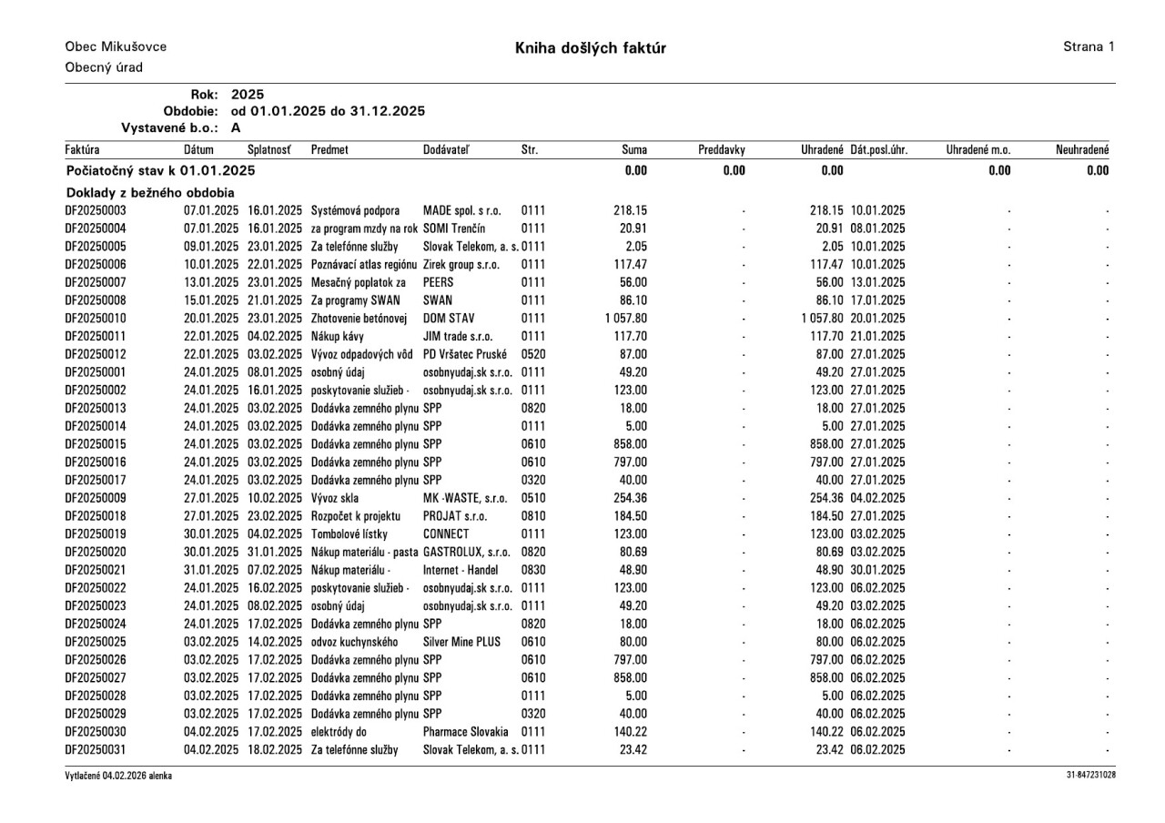 Kniha došlých faktúr 2025