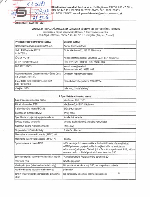 Zmluva o pripojení zariadenia užívateľa sústavy do distribučnej siete
