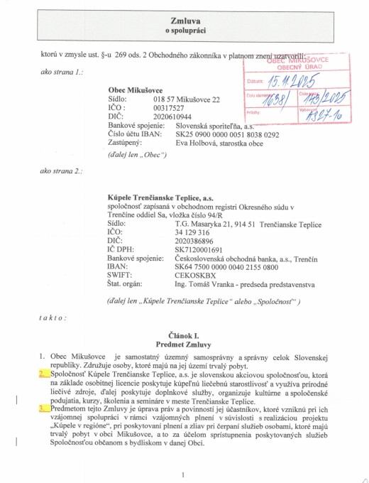 Kúpele Trenčianske Teplice, a.s. IČO: 34129316 DIČ: 2020386896 T.G. Masaryka 21, 91451 Trenčianske Teplice, Slovenská republika |