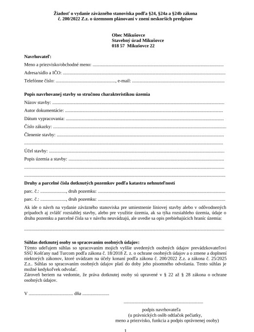 Prílohy pre stavebné žiadosti a ohlásenia, ktoré môžete použiť pri vybavovaní povolení na stavebnom úrade.